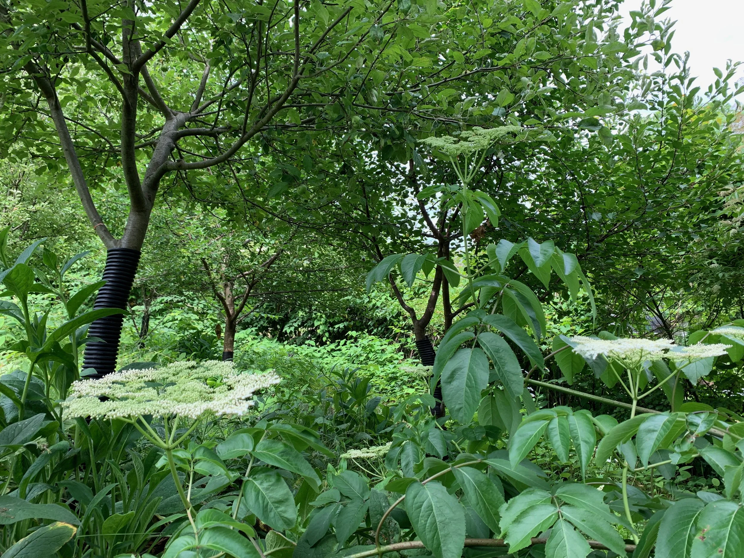 Most of the farm is permaculture zones three and four including managed orchard space, native fruit and berry shrubs, dozens of native nitrogen fixing trees and shrubs and large trees at the edge of urban forests. These spaces are now receiving the bulk of John’s time, both in hands on management and further design. Succession and the expansion of forest edges are seeing greater production from our trees and shrubs