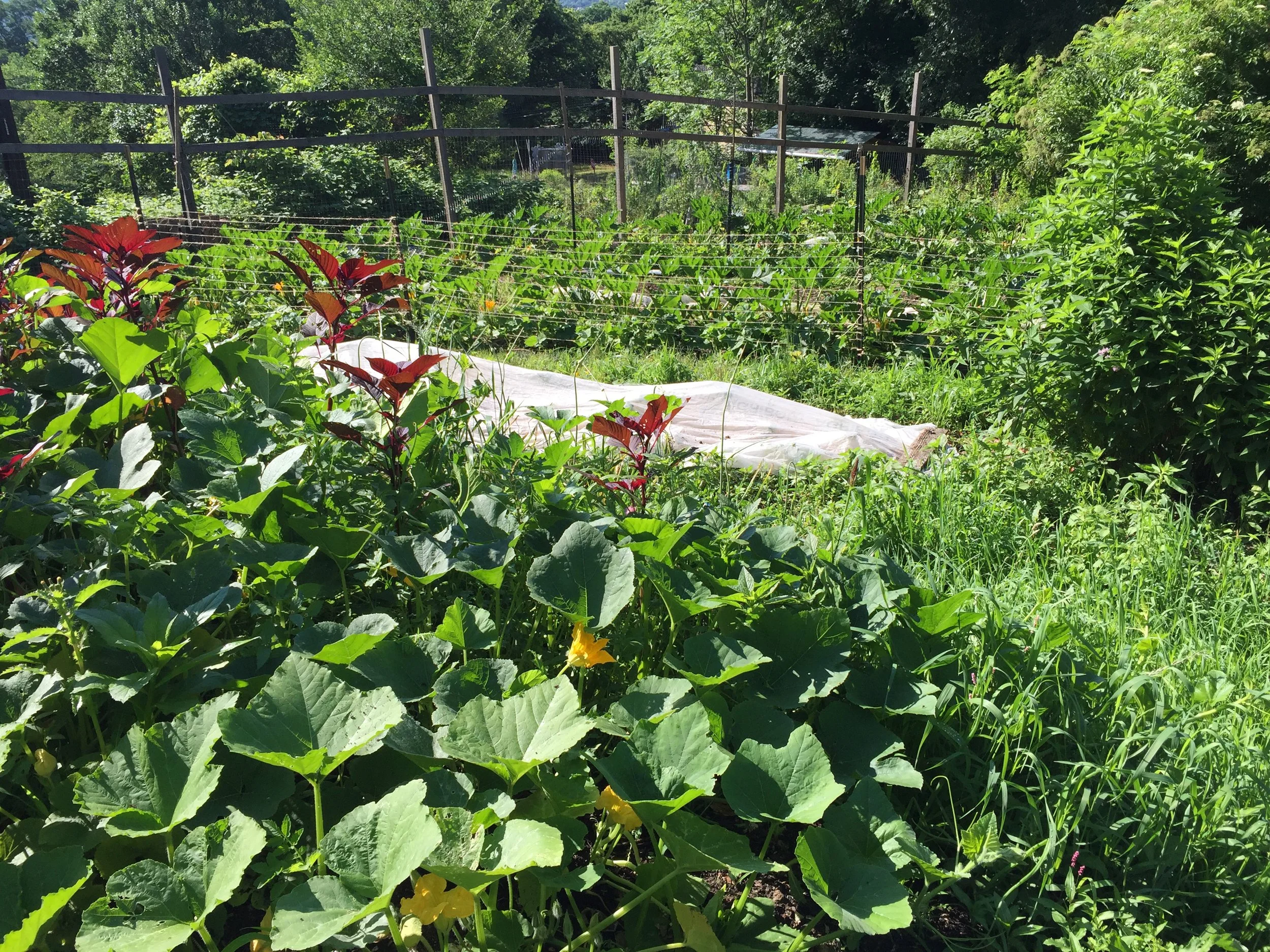 There are four annual garden plants on our three acres land each garden plot is surrounded by native and beneficial trees, shrubs and perennials. All of these spaces have been designed by John with input from farm staff and community members. The production gardens and food forests are designed for maximum yield while still being small enough for a few staff members and volunteers to manage. Each of these spaces has been sheet mulched heavily and received several yards of compost annually. The primary design goal of the annual gardens is ongoing soil restoration.
