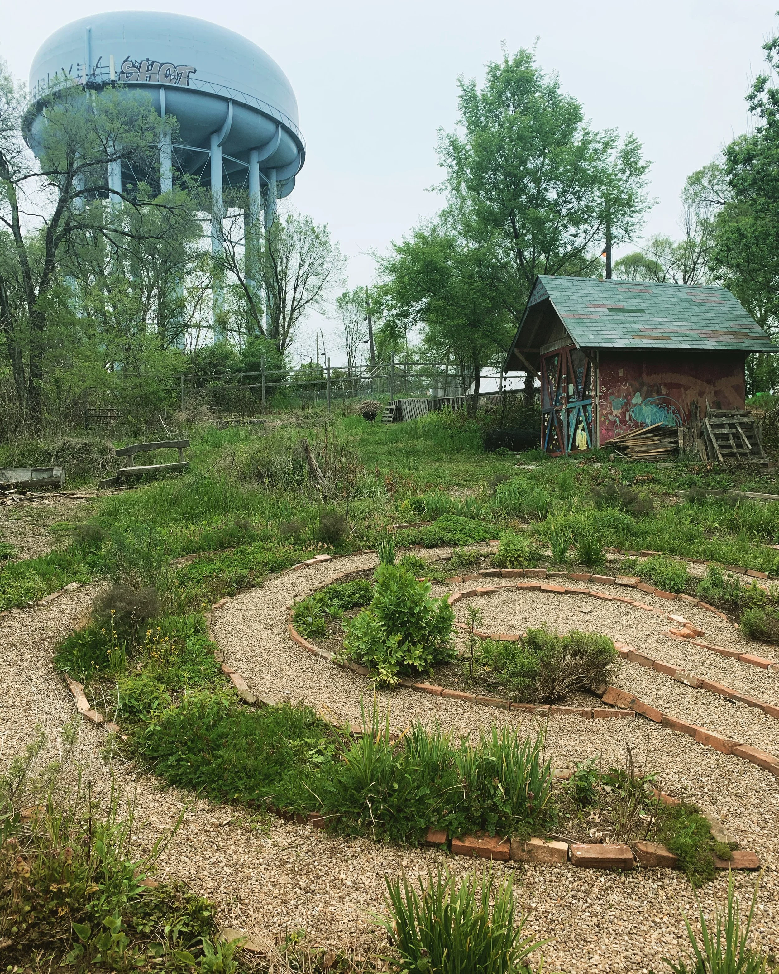 The entrance to the farm is a stairway, once used to enter a house. Today it leads to our Sensory Peace Labyrinth, a beautiful pollinator garden and walking labyrinth designed by Stephanie Bell of Philoxenia Life. Near by is our cob oven, and community meeting space. This space is designed for children and adults alike. Thousands of visitors walk through this space each year to engage in the many programs of the farm, to learn permaculture, to pick up their CSA share or even to worship with The Open Door Church.