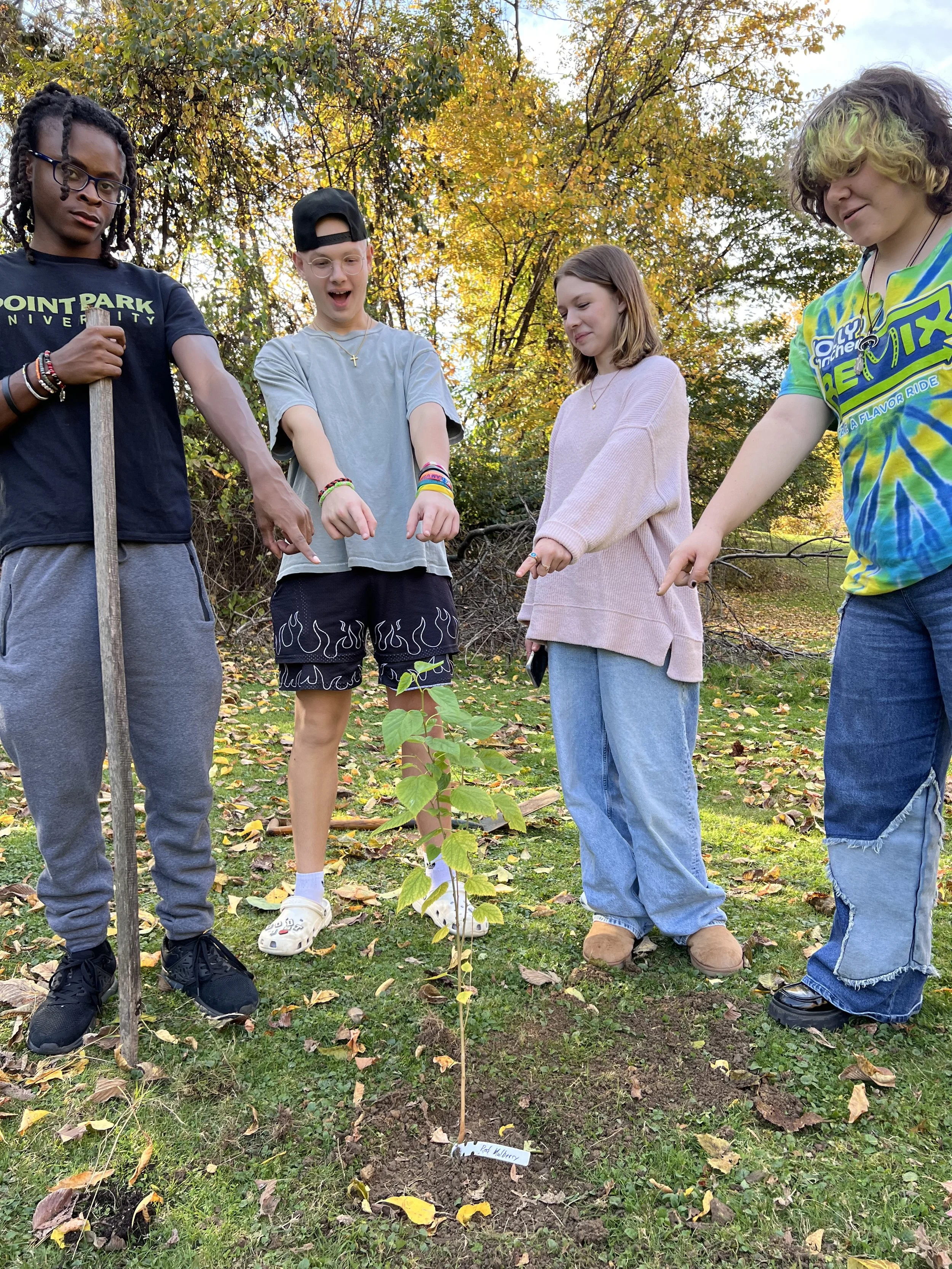 Beulah Church Teens plant a native Red Mulberry.